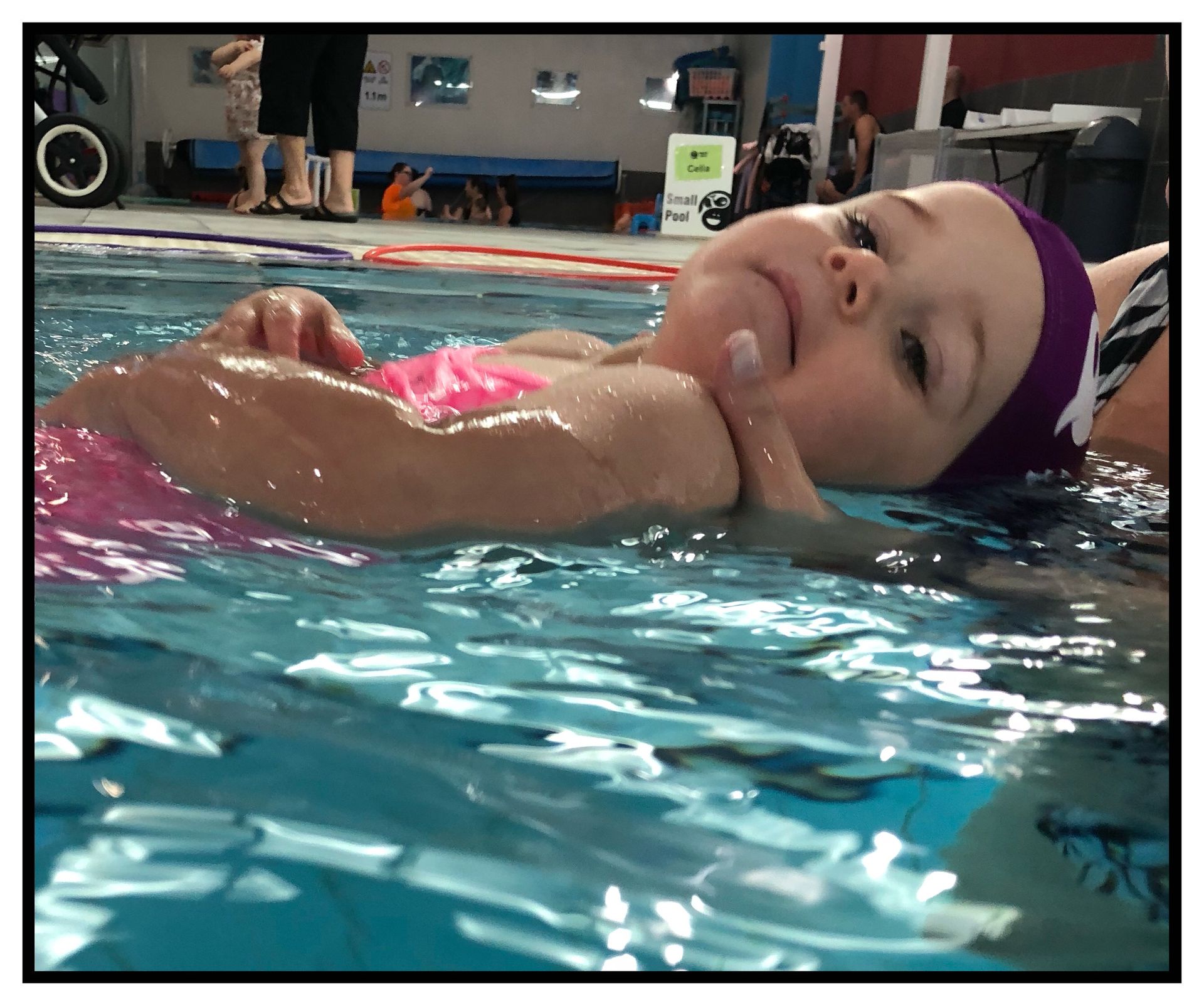 Swimming can be fun and exciting and sometimes your baby will not want to lay down and be still. If this is the case you will need to use distractions and a counting cue.